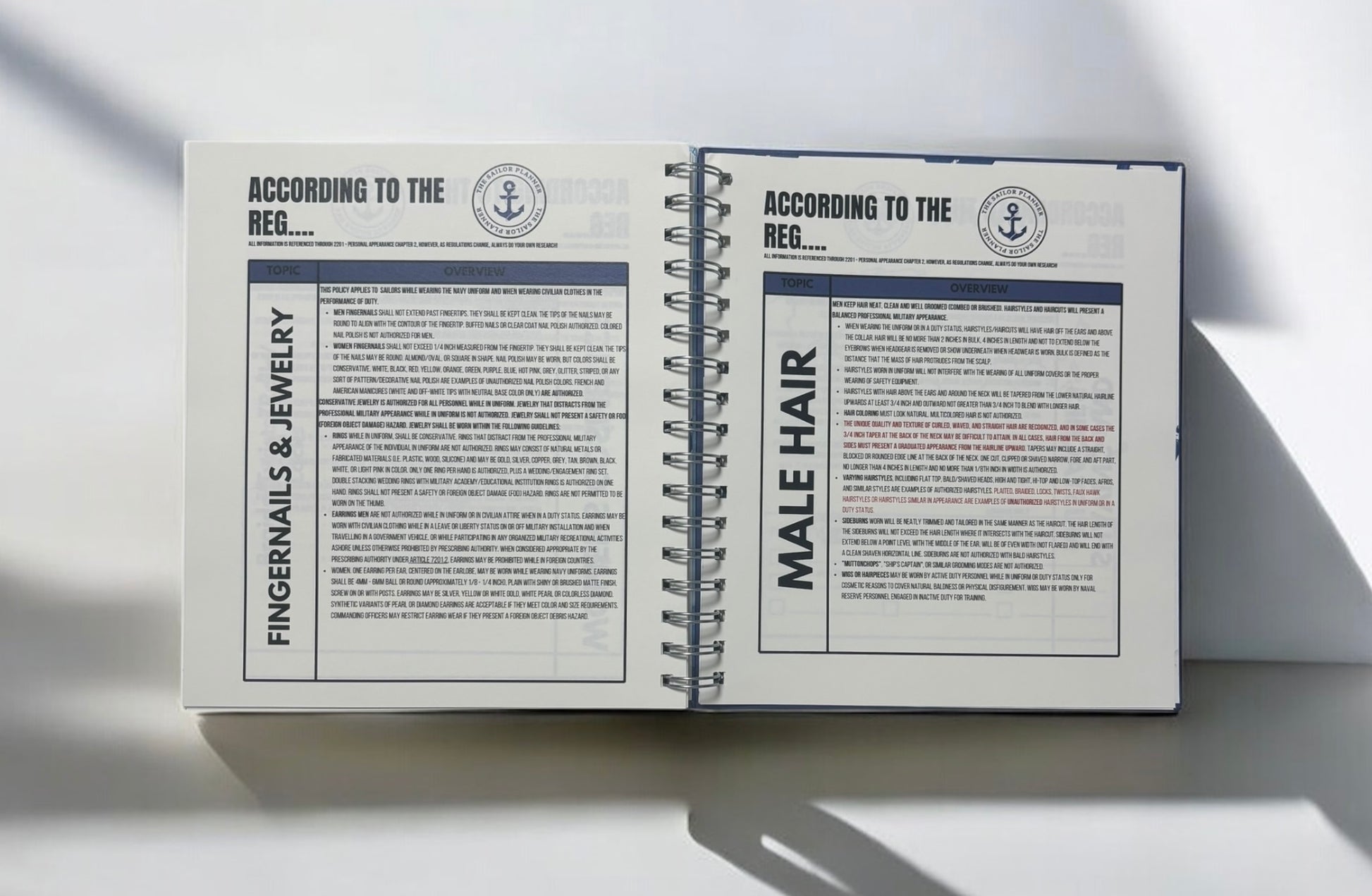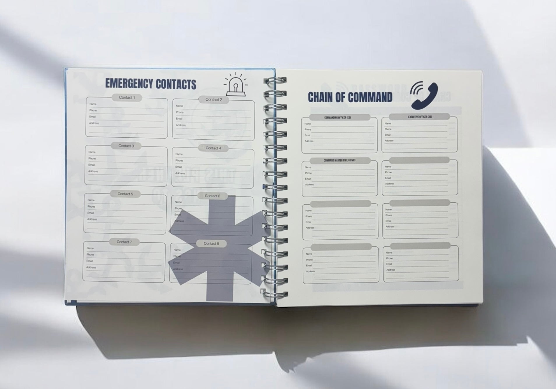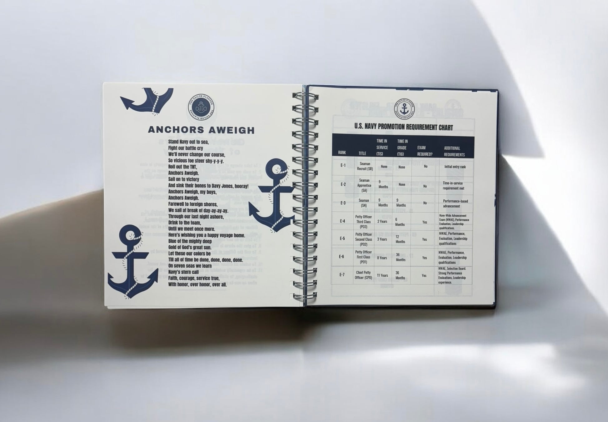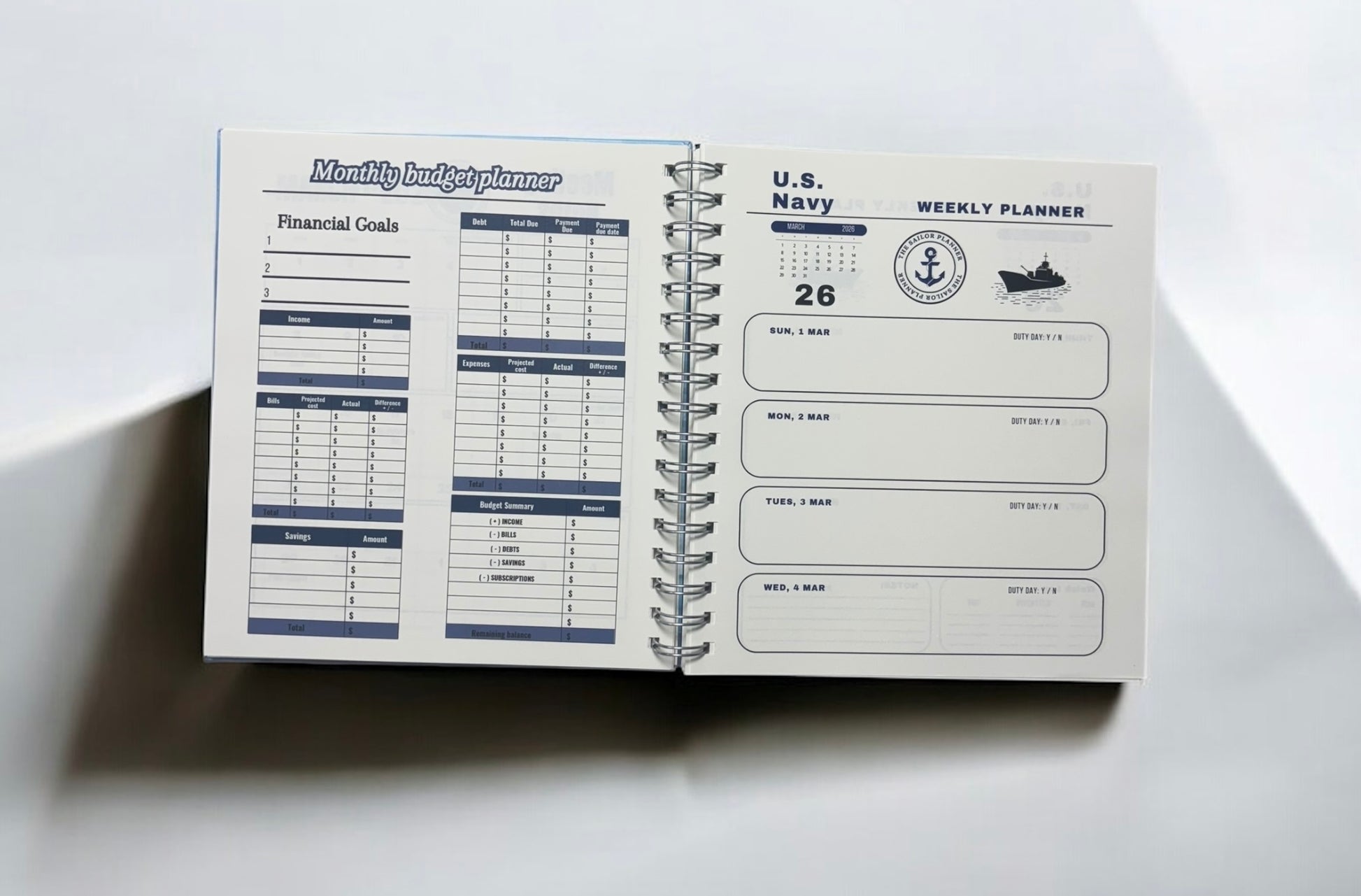 Built for the disciplined sailor, the Navy Planner helps you navigate your day with precision. With a compact 8" x 9" format and durable 120gsm paper, it includes daily planning pages, Navy-specific creeds, rank identifiers, budget and notes pages, and more. Additional tools like the emergency contact list and password tracker make this your ultimate shipboard and shore companion.