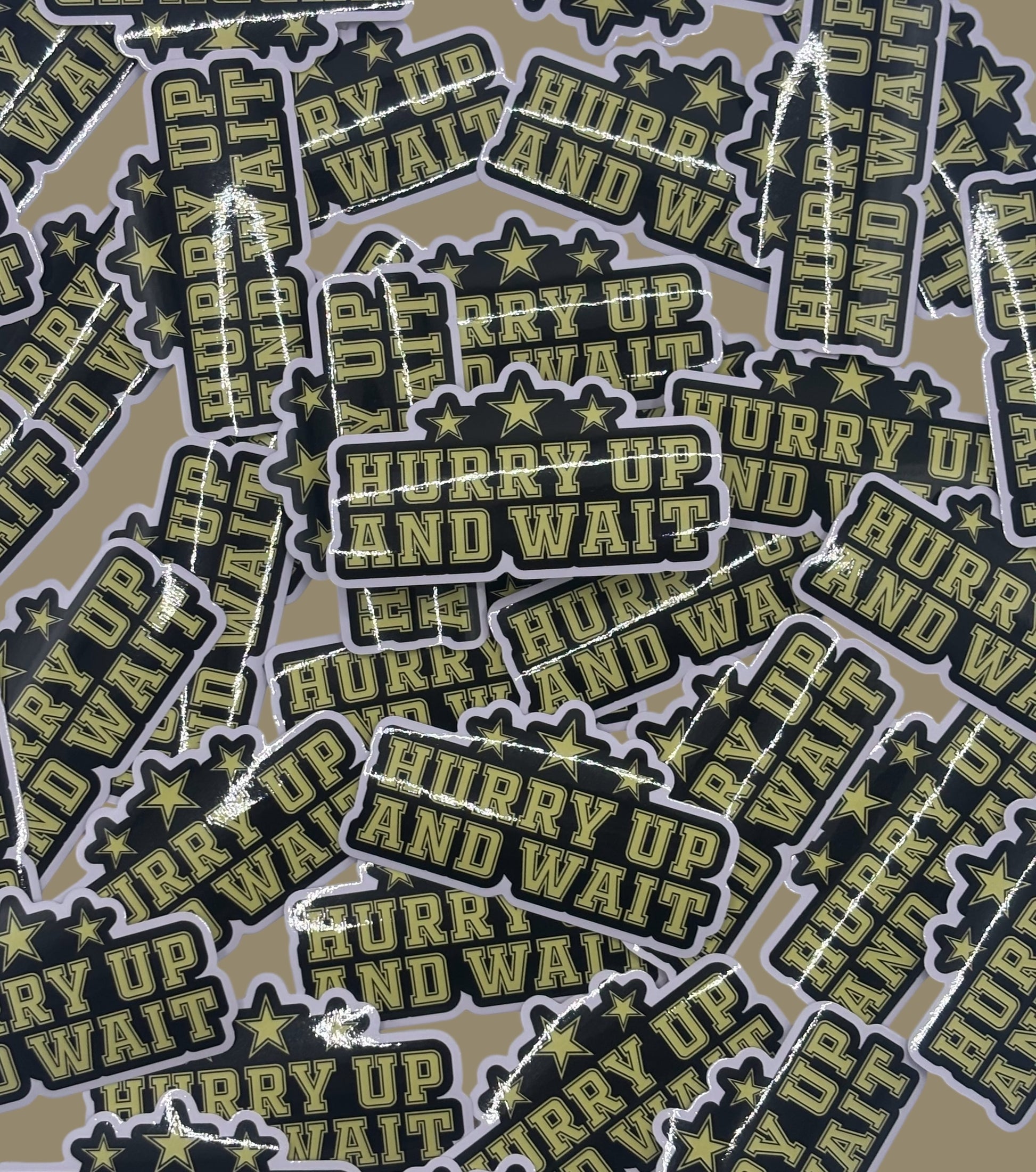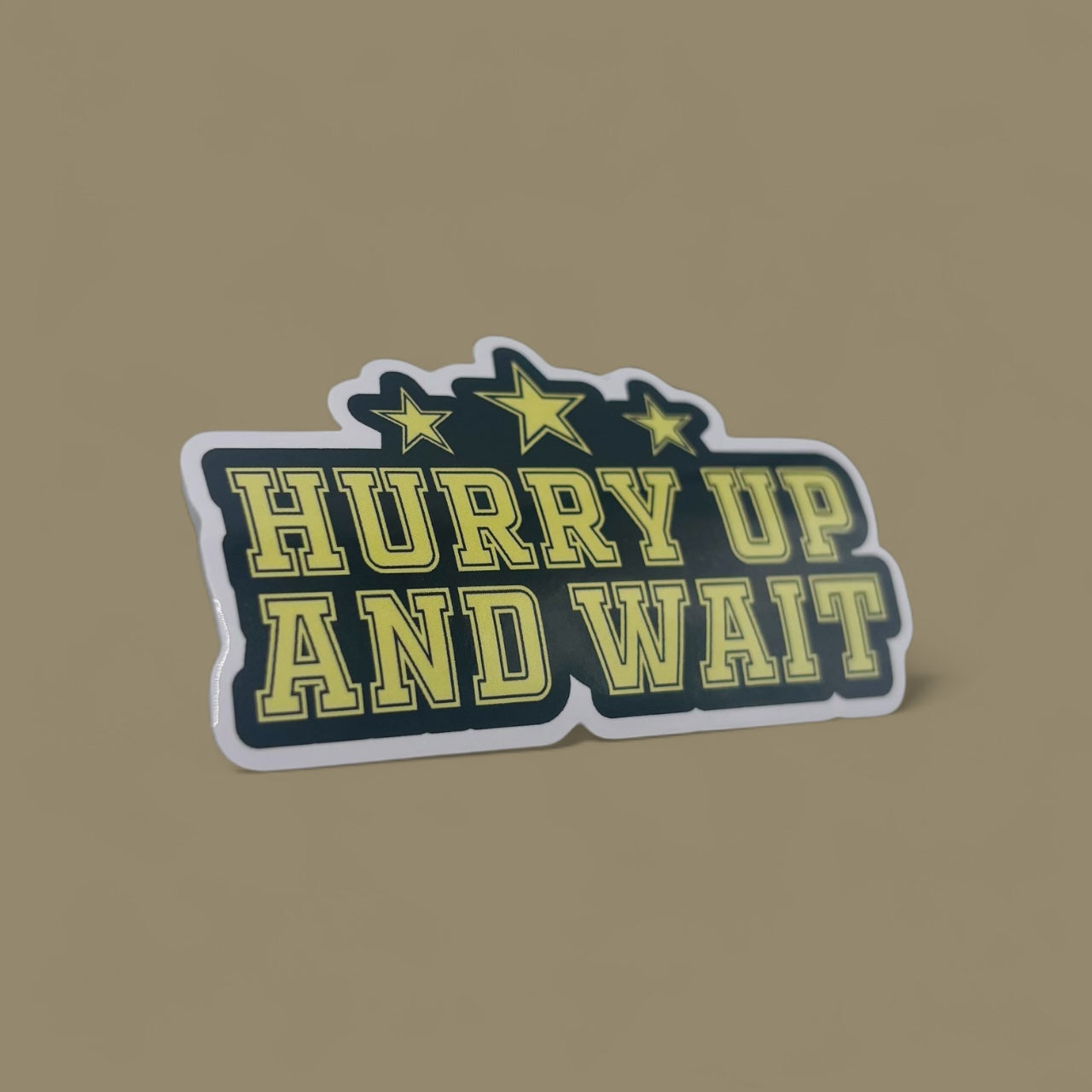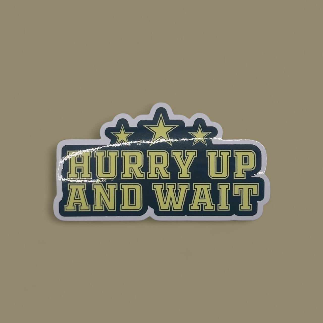 Our Hurry Up & Wait sticker captures the classic military saying we all know too well. Durable, weatherproof, and perfect for water bottles, laptops, or planners—made to last through every mission.