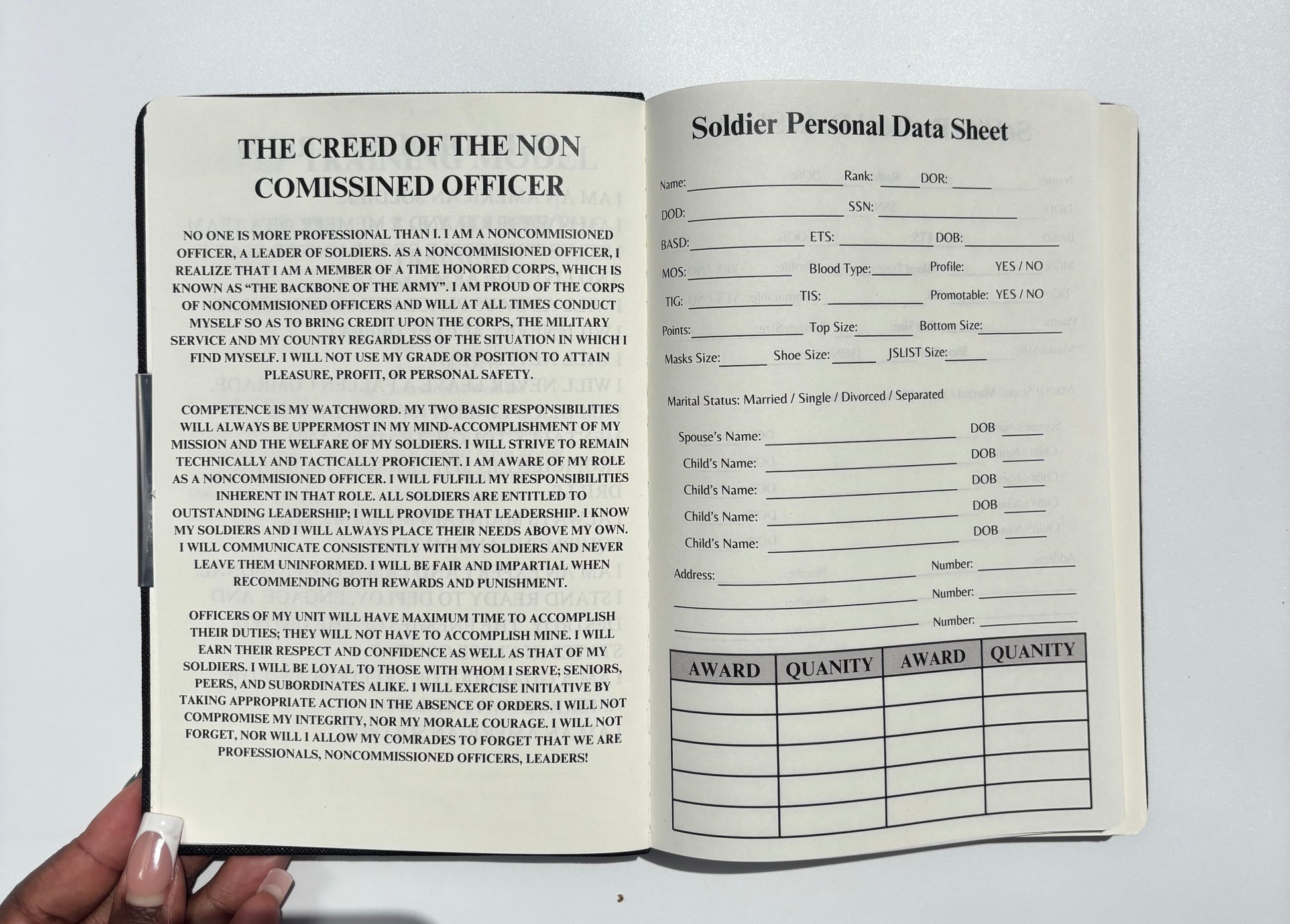 Whether you're preparing for inspections, leading training, or guiding your Soldiers through their careers, this durable and organized leader’s book is your go-to companion in garrison and in the field.
