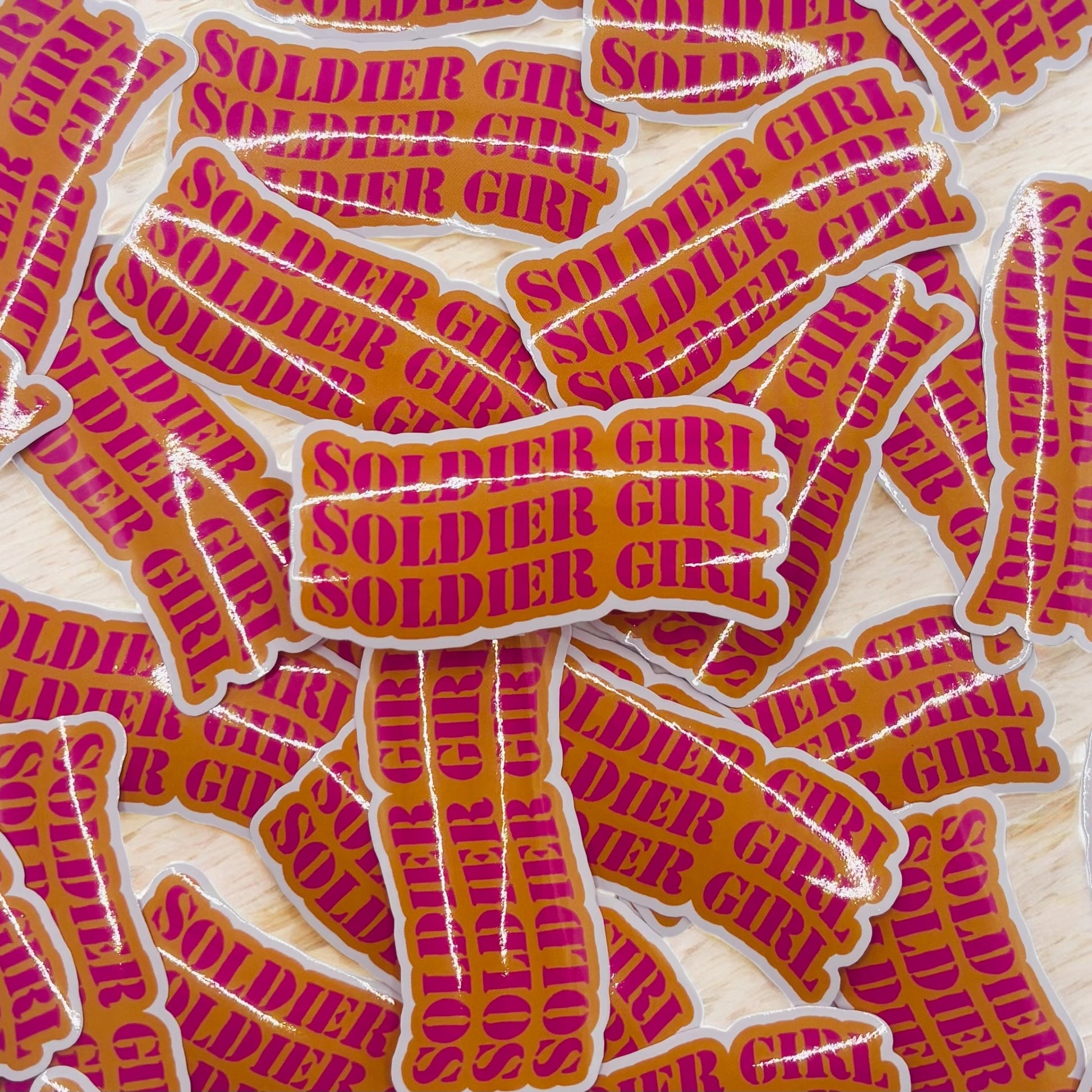 Our Soldier Girl sticker represents strength, service, and pride. With a bold design it’s perfect for showcasing military life on laptops, water bottles, or planners.