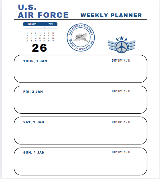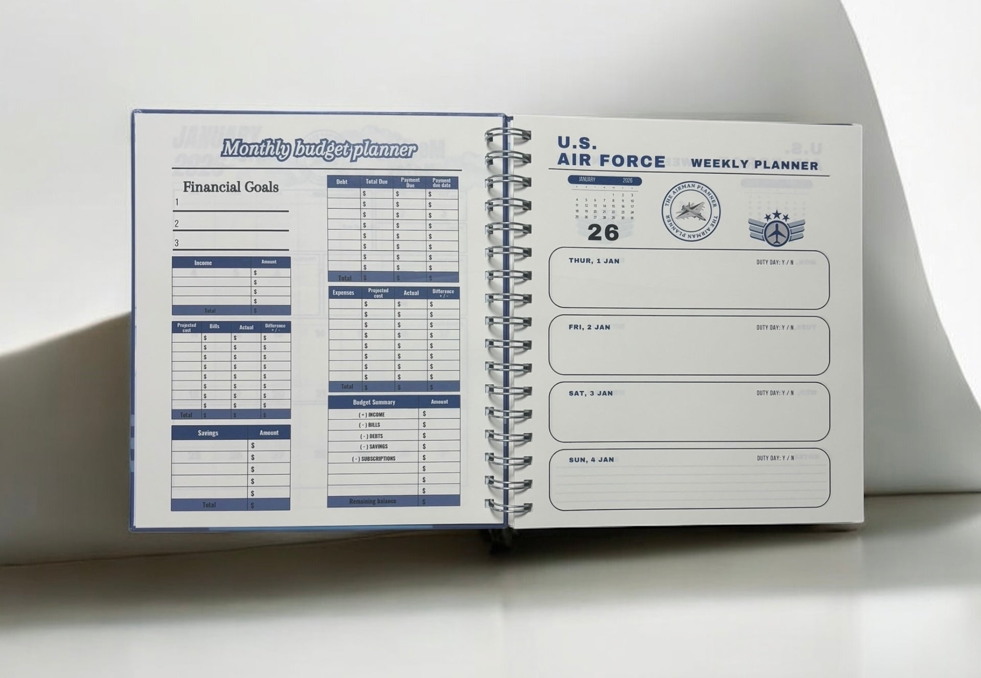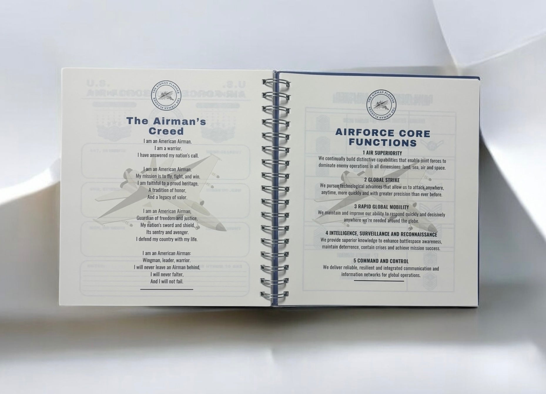 For Airmen who like to plan their week with mission-ready clarity, the Air Force Weekly and Daily Planner delivers. With dedicated space for tasks, trackers, and weekly priorities, it also features military-specific content like rank identifiers, a password log, and chain of command contact pages. Its 8" x 9" build fits perfectly in a bag or desk.