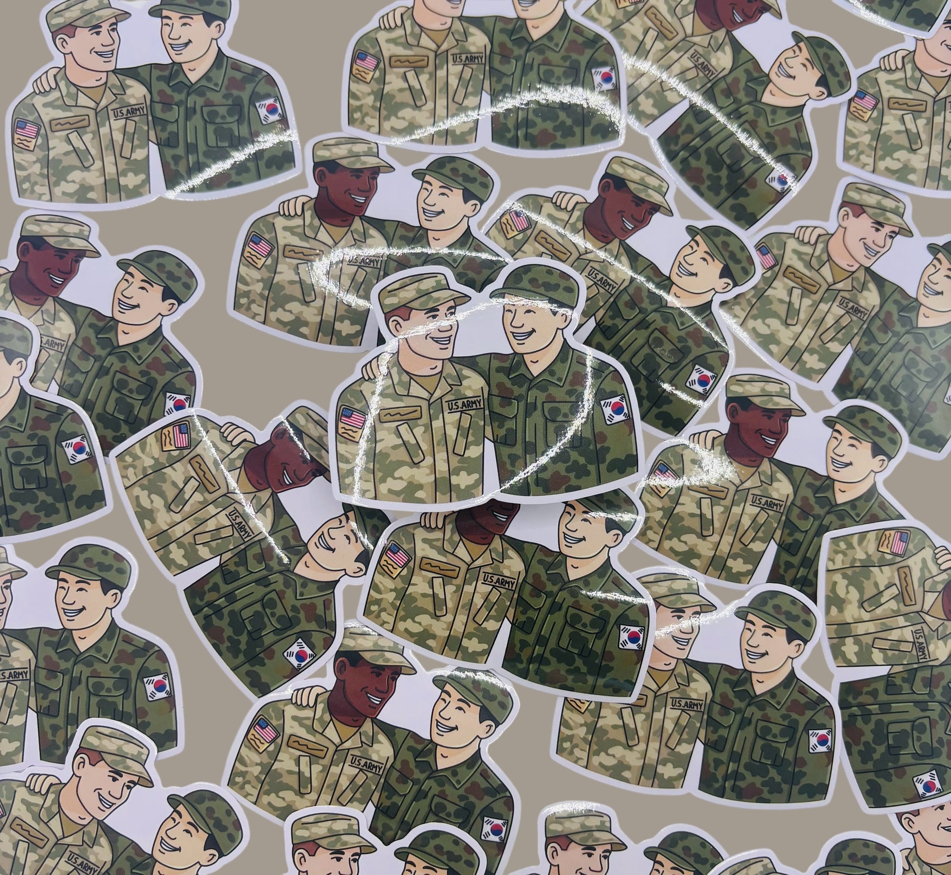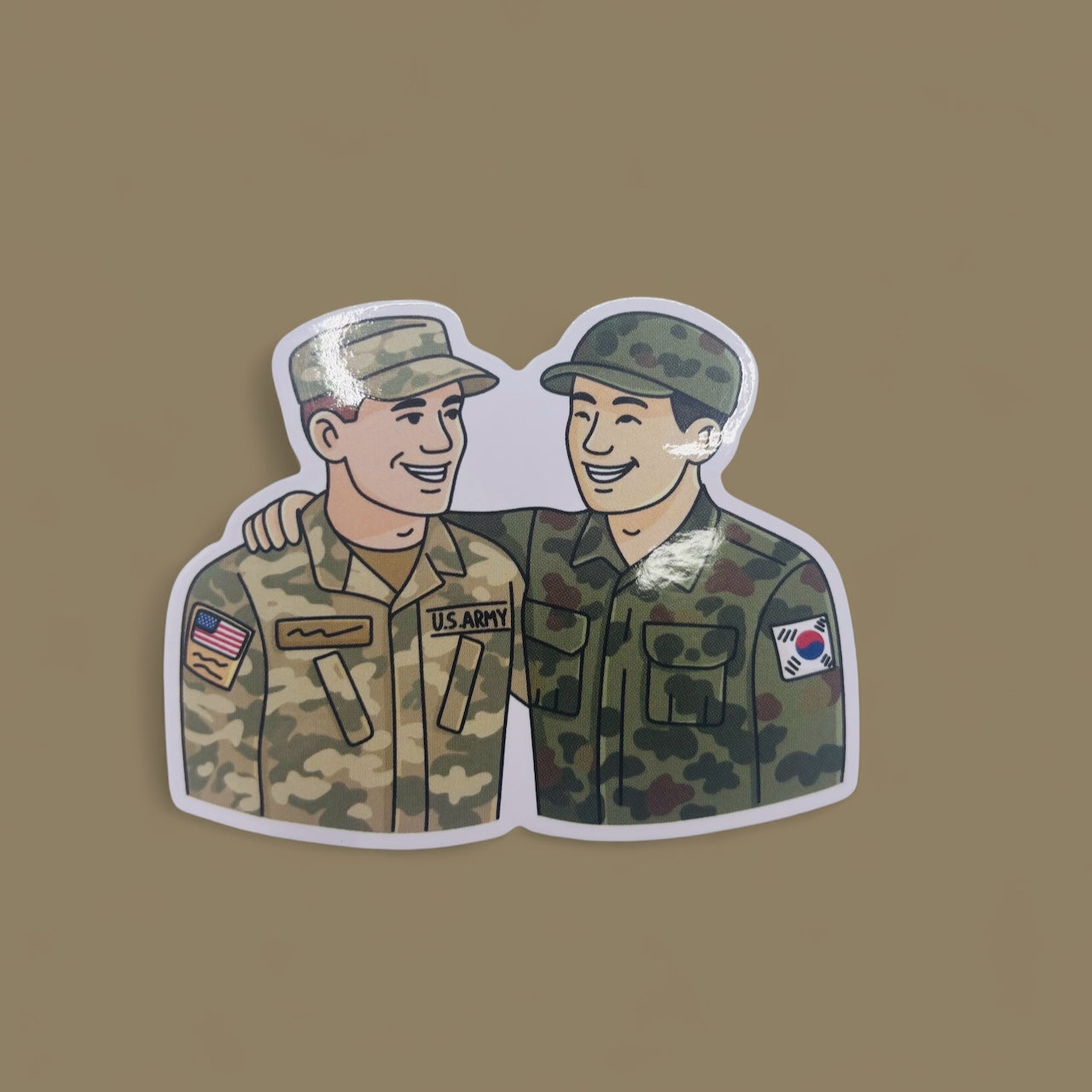 Celebrate friendship and alliance with this heartwarming sticker of an American soldier and a South Korean soldier smiling side by side. A symbol of unity, trust, and shared purpose — because we go together, always.